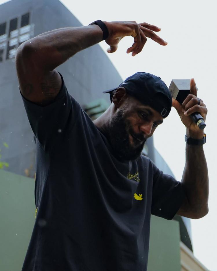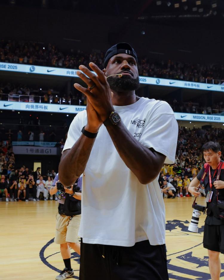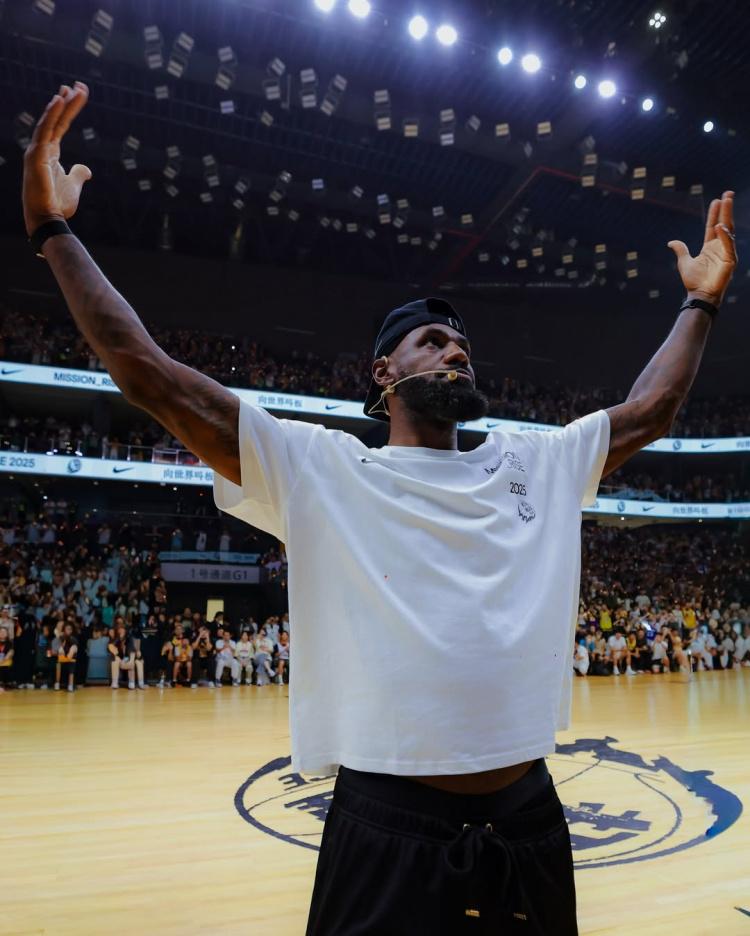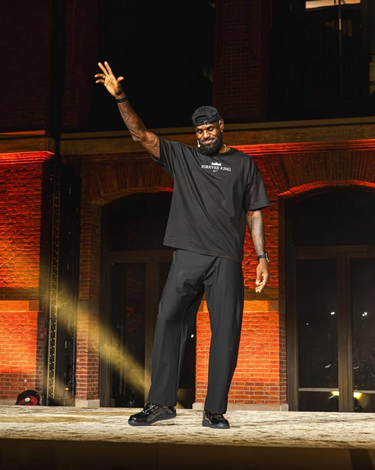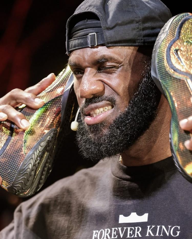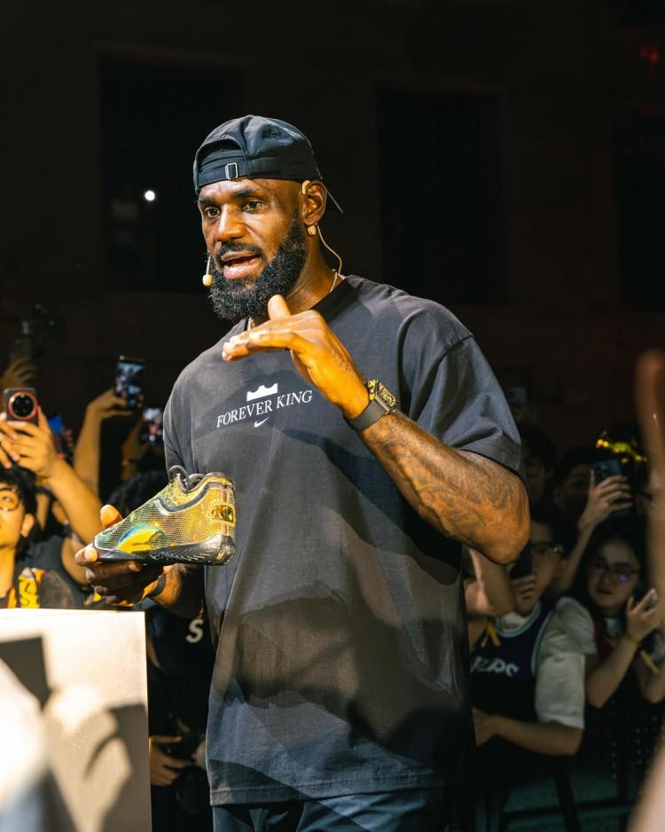 Soleretriever配文写道:“勒布朗·詹姆斯上周回到中国,开启了Forever King之行,庆祝他首次亚洲行的20周年。在上海和成都,大批球迷热情迎接了这位篮球巨星。詹姆斯不仅参与了问答环节和产品推广活动,还与中国耐克RISE项目的年轻球员进行了互动。”