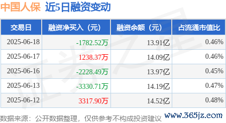 本站消息,6月18日威贤配资,中国人保(601319)融资买入6829.47万元,融资偿还8611.99万元,融资净卖出1782.52万元,融资余额13.91亿元。